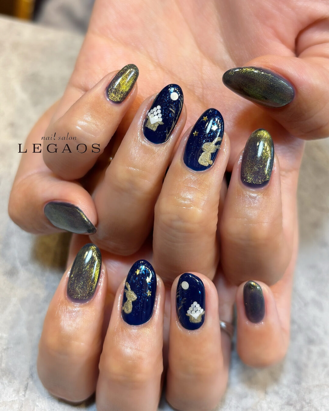 お月見ネイル✨ お月見ネイル✨ 夜空のようなネイビーに きらめくラメと、かわいいウサギ&お団子をオン♡ 季節感たっぷりで、秋の指先にぴったりなデザインです 9月のキャンペーンデザインぜひ店頭でチェックしてください♥ ✂︎⸻ スキル 投稿日 2025年9月8日 ← 肌なじみの良いヌードカラーに 秋の限定カラー登場✨ →
